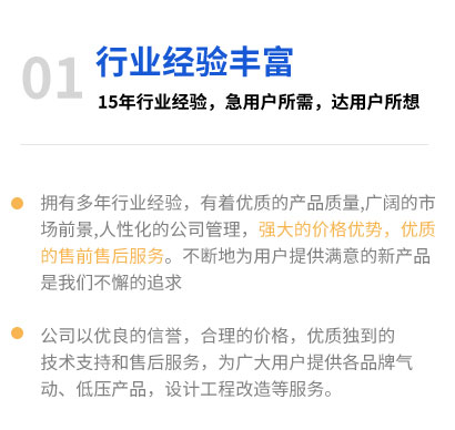 東莞市億源自動化設備有限公司與贛州市億源科技有限公司集研發,銷售,服務與代理為一體的公司,主要致力代理韓國兩大品牌,SYM氣動元器件與B&B TECH氣動伺服比例閥的產品在中國大陸推廣,銷售以及服務為一體。我們的產品廣泛應用于石油、紡織、醫藥、醫美與醫療,冶金、機械、電子、礦山、化工建材、電力、能源等行業,品質在行業內外享有良好的聲譽。為客戶提供優質的產品和完善的售后服務是我們的終目標。公司本著實事求是、薄利多銷、合作共贏